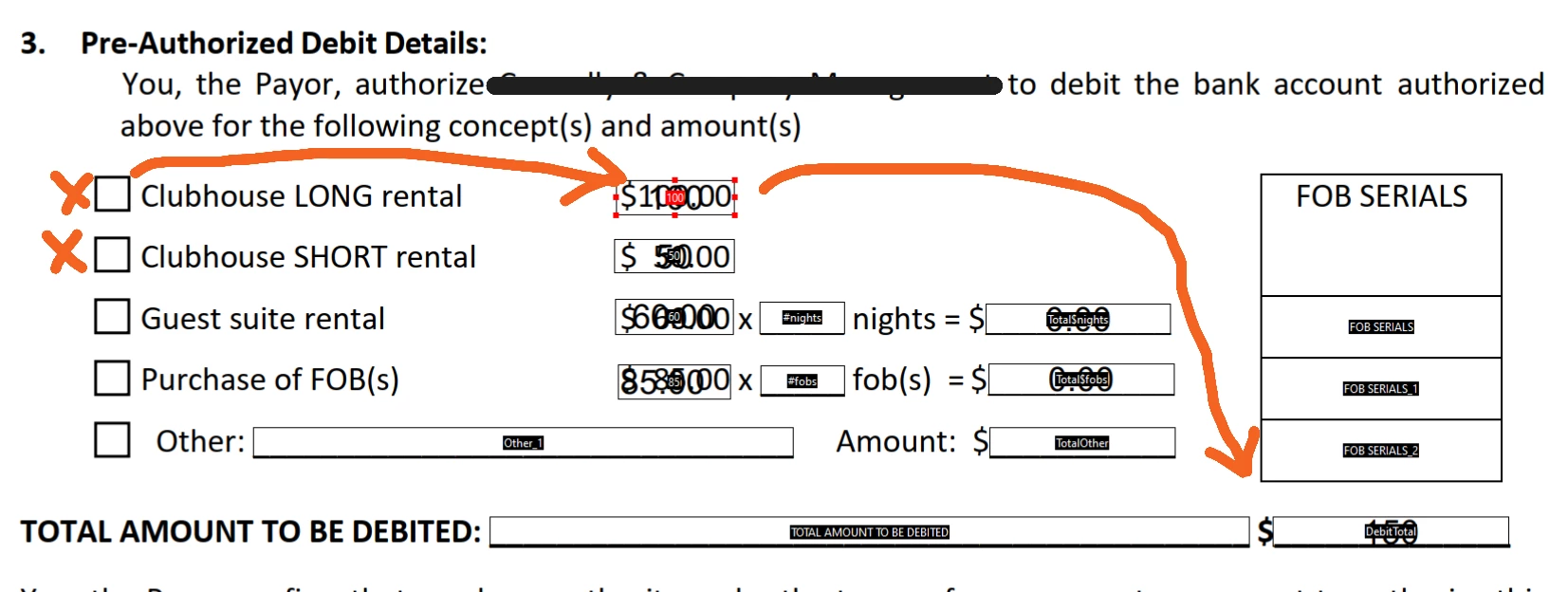 I have a list of checkboxes that, if selected I want to activate a number field that will be included at a Total amount for different charges.