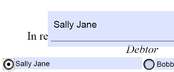 Right now, when I click the "Both" circle, it shows the name on one line. Is there any way to have it to where if they choose Debtor 1 or Debtor 2 - it displays as normal; however, when selecting both, it will stack?