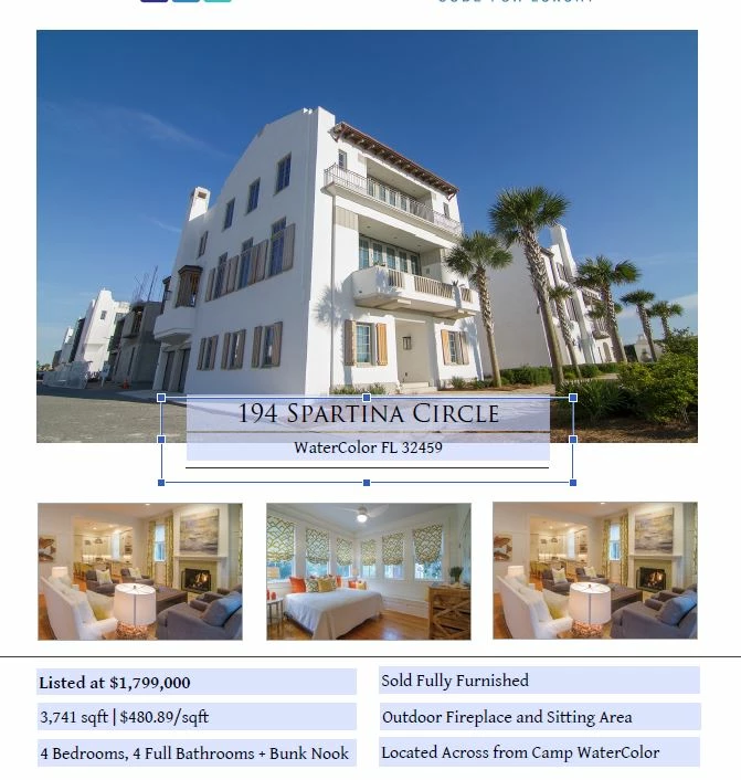 I work for a real estate brokerage and I am trying to create an editable flyer in acrobat. My agents will be editing the template in reader. In order for them to swap out information and images I have placed text fields (for the property info) and an action button implementing javascript to prompt image swaps. But I have hit one hiccup. The main image needs to be arranged in the back of the PDF so I can layer a white text box on top of the photo. Please see the image below. Is there anyway to do this, the text box is outlined. I know it is there, I just can't place it on top of the main image (the main image is using an action button).