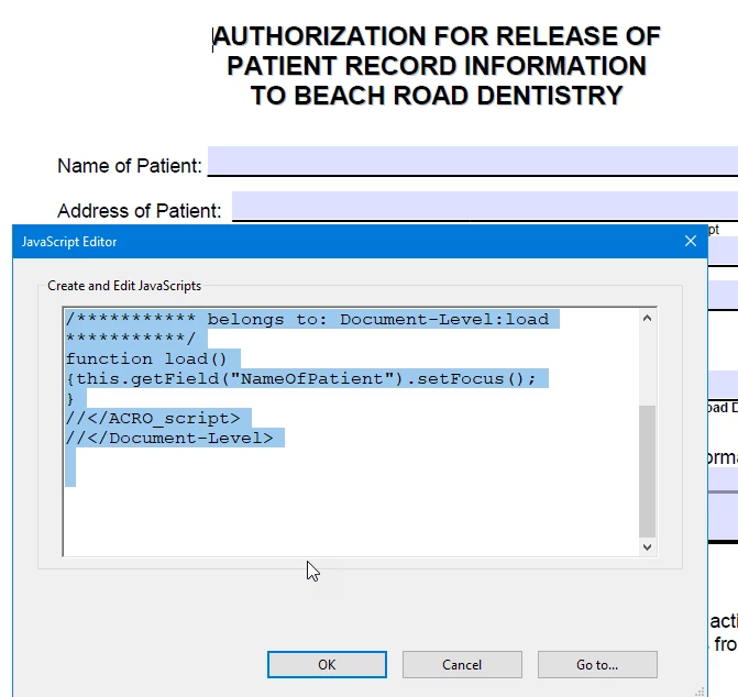 I have Adobe Acrobat Pro XI. How do I make the cursor appear in the first form field when the document is opened?