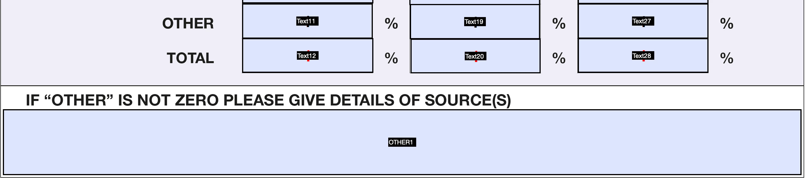 I'm new to editable PDF's and a novice at Javascript. I have three number fields (Text11, Text19, Text27) that if the value inside any one of them is one or higher - I need it to unlock another box below (OTHER1). Does anyone know how I programme this with custom script?
