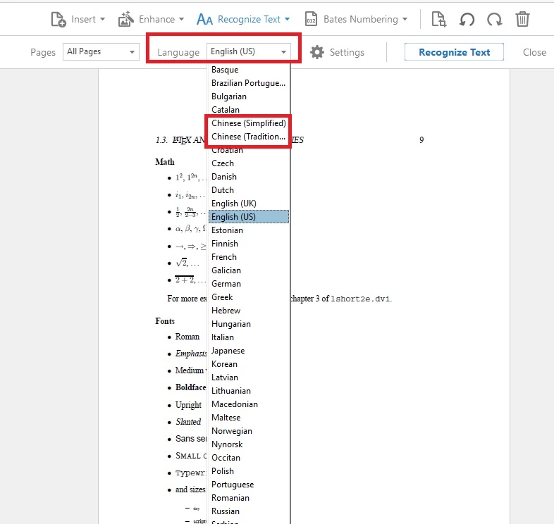 Does Adobe OCR process Chinese characters?