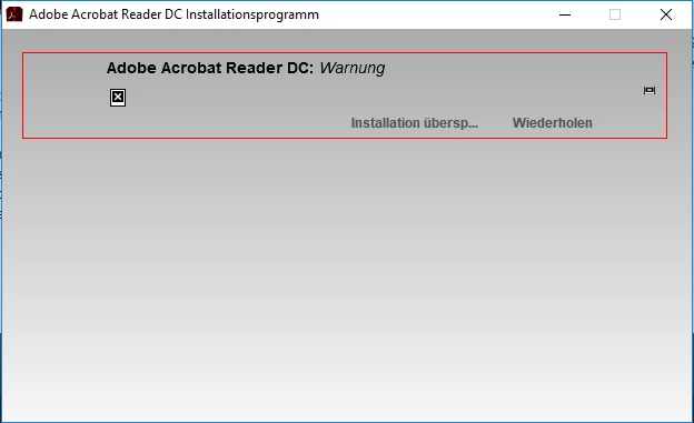 If I jump over the installation, Adobe still won't open. If I click "repeat", nothing happens and the installation aborts.