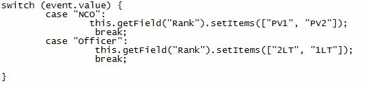 this.getField("Rank").setItems("PV1,PV2");