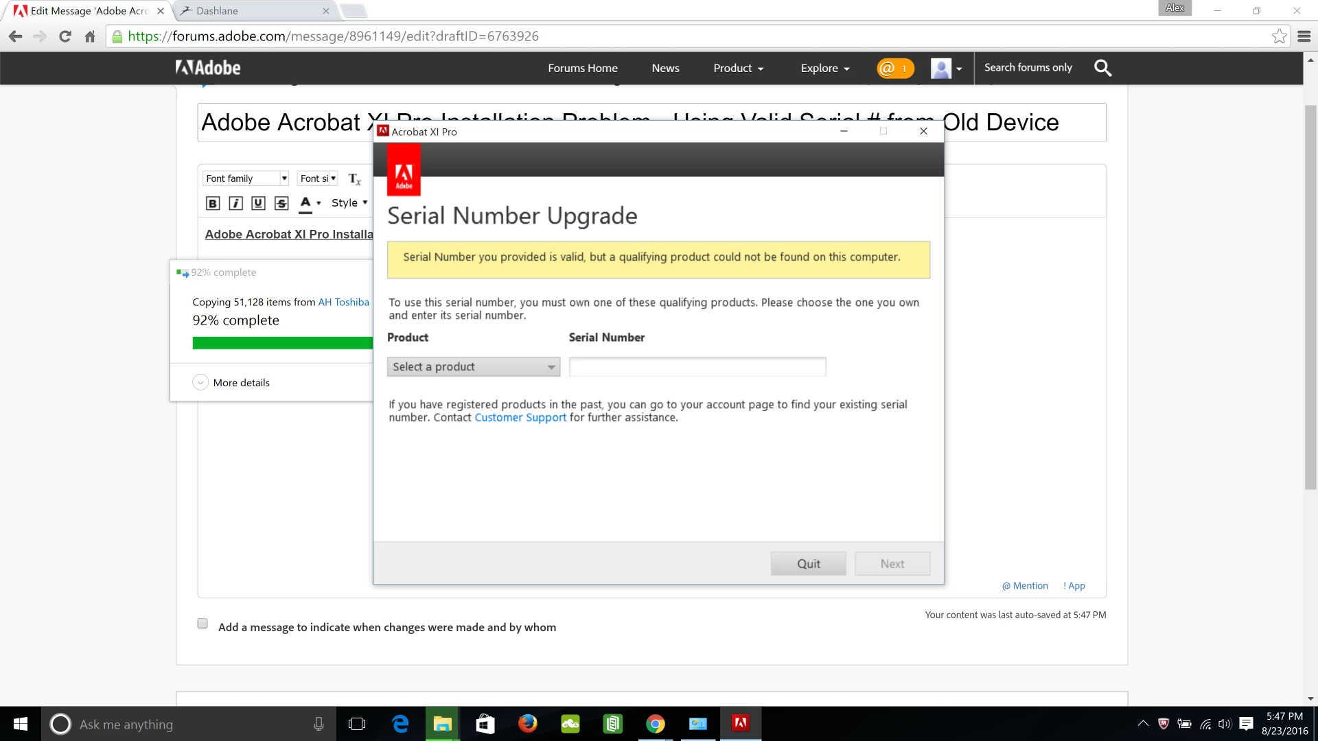 Error serial number you provided is valid when installing Adobe Acrobat XI Pro
