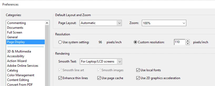 Please try navigating to Edit>Preferences>select "Page display" from the categories and set the zoom level to 100% under the label " Default layout and zoom" . Click OK .