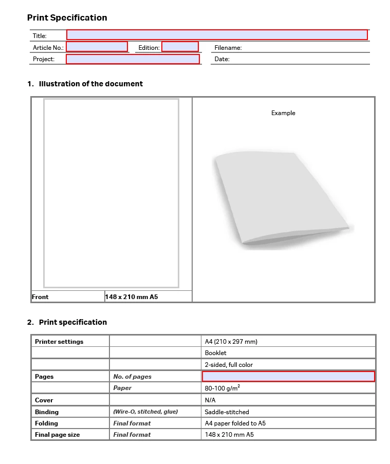 I work in product documentation and for every publication that we produce, we need to send a Print Specification PDF to the printer. The print specification needs to have the publication's title, page numbers, publication number and edition (found in the footer and last page), project, date, and a screenshot of the cover of the publication.