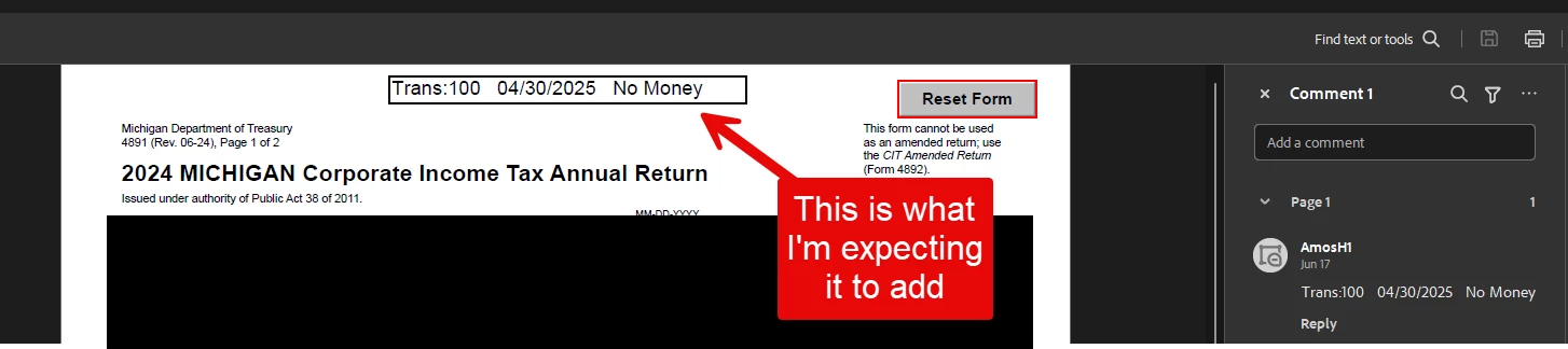 FreeText Annotation not being added in New Adobe