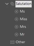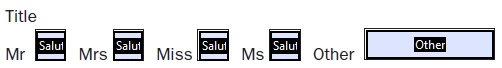 I’ve grouped them under "Salutation", but they cannot be individually named as form fields to delineate them and the fillable field "other" cannot be grouped/linked into the salutation.