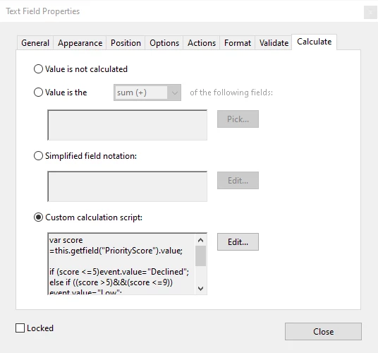 var score =this.getfield("PriorityScore").value;