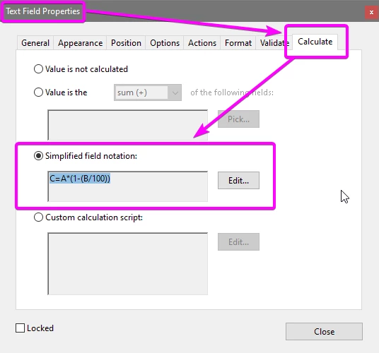 I have three fields in a PDF form and I need to calculate one of the fields using the other two fields. Please see below: