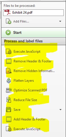 In version 11, Adobe Acrobat displays all of the actions for some reason under the "Process and label files." Is there a way to hide these so the user does not accidentally click on an action out of sequence instead of hitting start? This causes confusion for users who think they can skip to step they want in the sequence without realizing every step is important.
