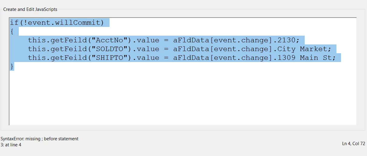 Field 2 Sold To (this is the clients name based on the account # selected in field 1)