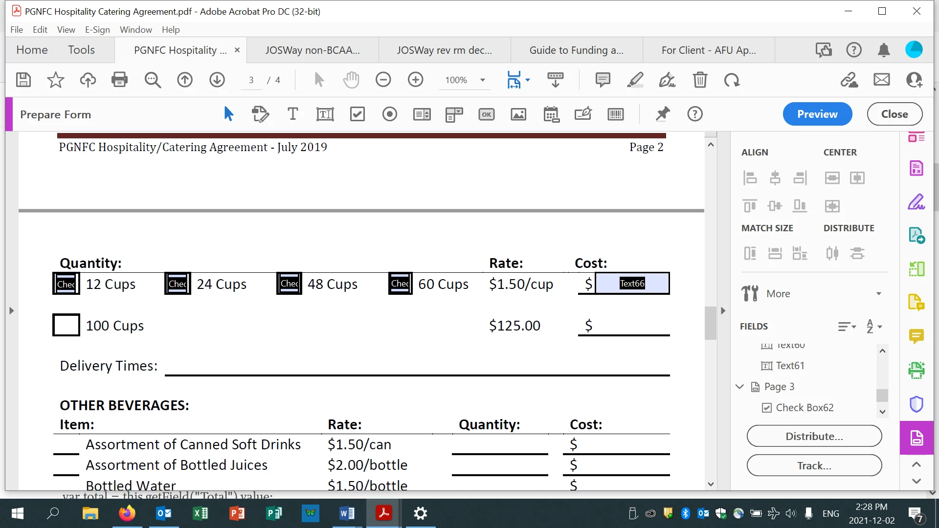 I need a code that will calculate the total cost if one of the check boxes are clicked. For example, if people check "12 Cups" then the "Cost" text box will calculate: 12*1.50/ cup. If people want 24 cups, then just change the calculation to: 24*1.50/ cup. So on and so forth. Any ideas?