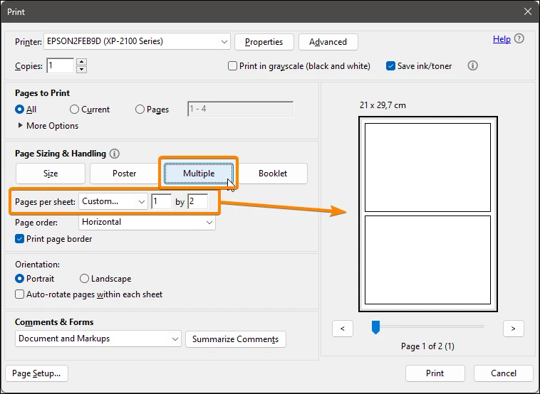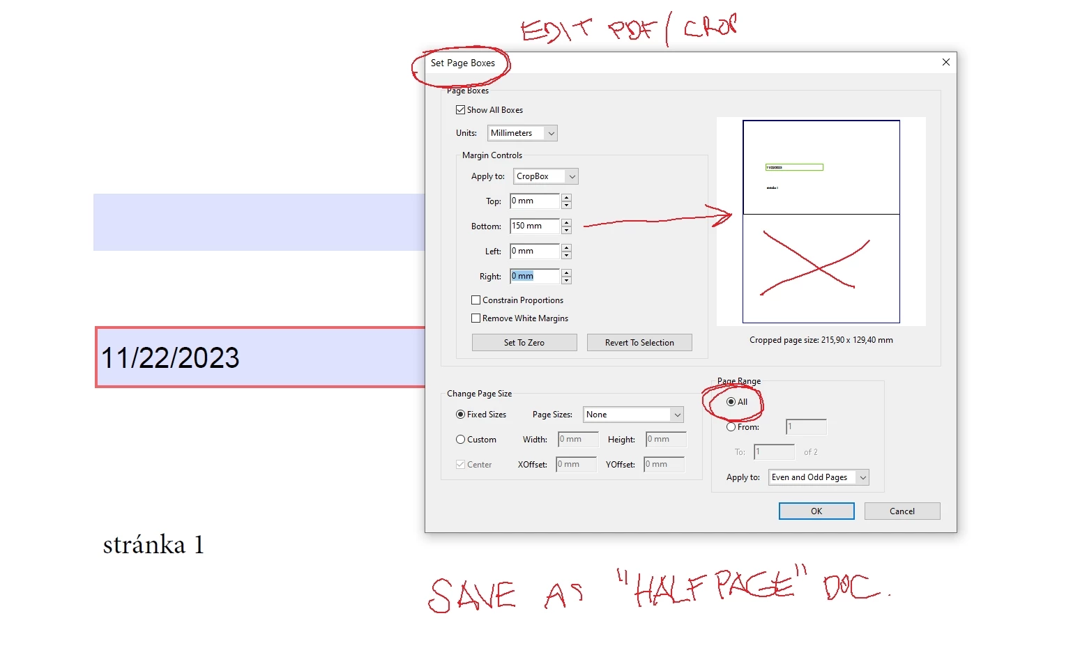 So, I have for teachers (teaching standards). It is 44 pages and every page only has text on HALF the page. The bottom half of every page is EMPTY. Is there a simple/easy way to cut every page in half, discard the EMPTY part, and combine the two top half pages together into one page? (which would make the pdf a total of 22 pages instead of 44 and no empty/waste of space?).
