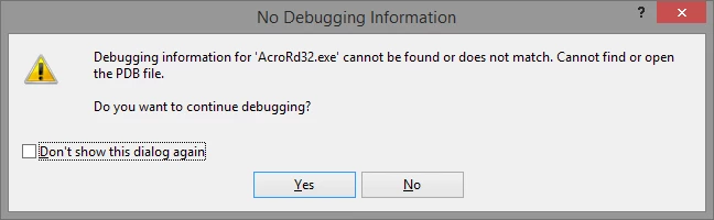 Of course I don't have PDB file of Acrobat's executable. So what do I have to do? Other question, the plugin have a lot of callbacks, can VS handle that?