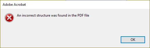 The problem is when I combine these two forms from . An error message to "An incorrect structure found in the PDF file"