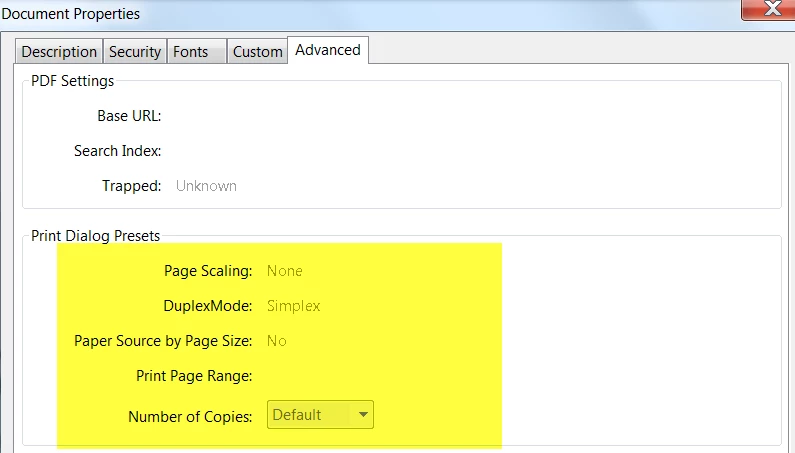 Asunto: I try to establishing the print dialog presets, but i saw that is inactive. How i can to activate this option?
