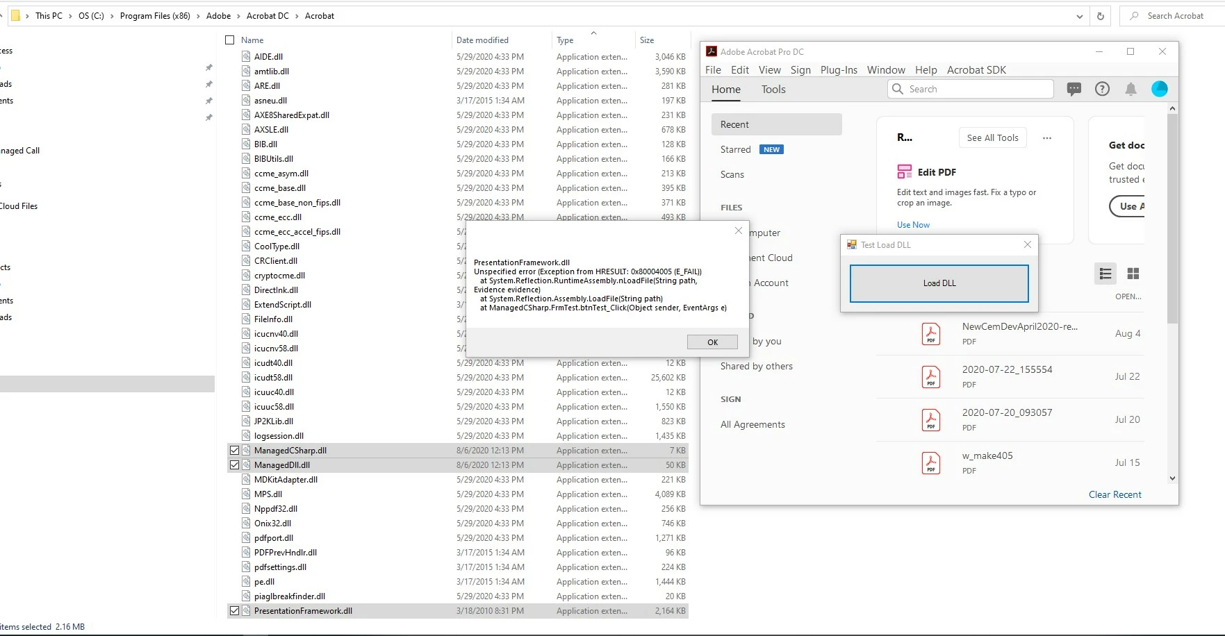 I have C# DLL which load PresentationFramework.dll .I call it from Acrobat SDK -> Basic Plugin in Acrobat Pro cd.