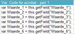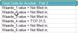 I'm troubled with some issues regarding Excel cells that needs to filled in by javascript code that's filled in the acrobat tab Custom calculated script. Normally I use this script for a pricelist thats been made up in excel. This code is: