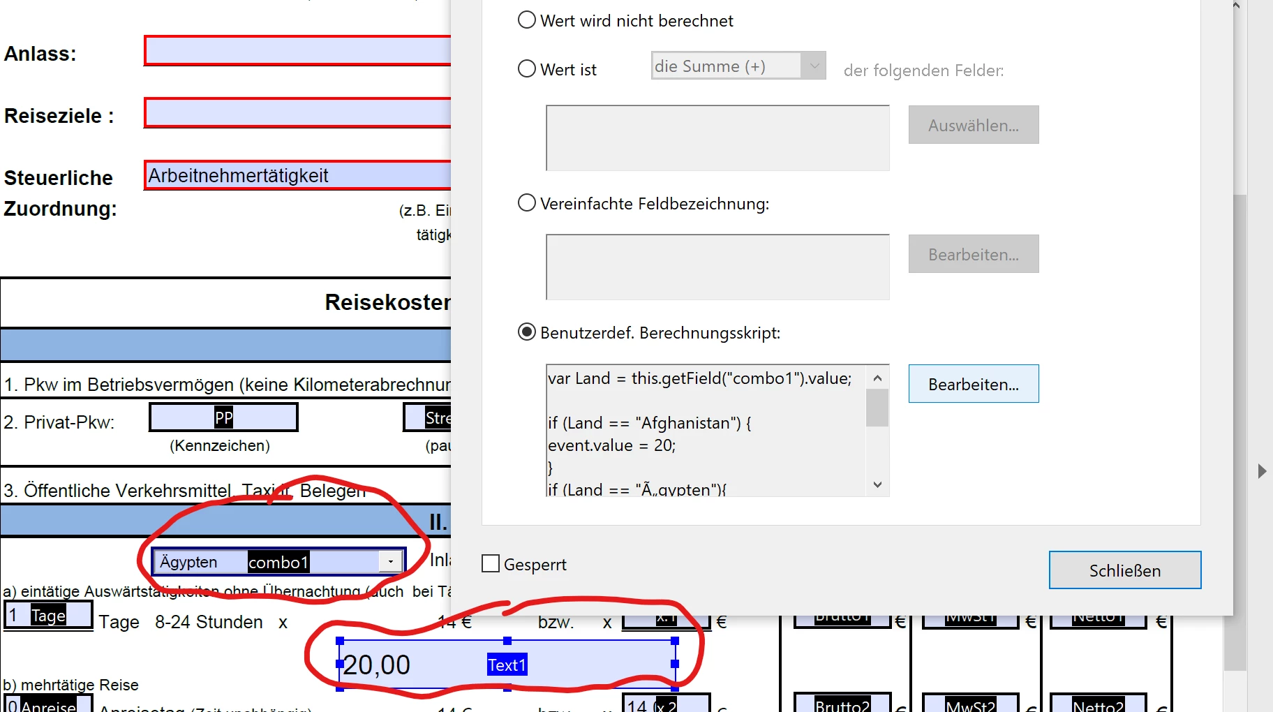 based on the selection that the user has to make in a combo box I want a value to be written into another field, I tried the following code but it does not work: