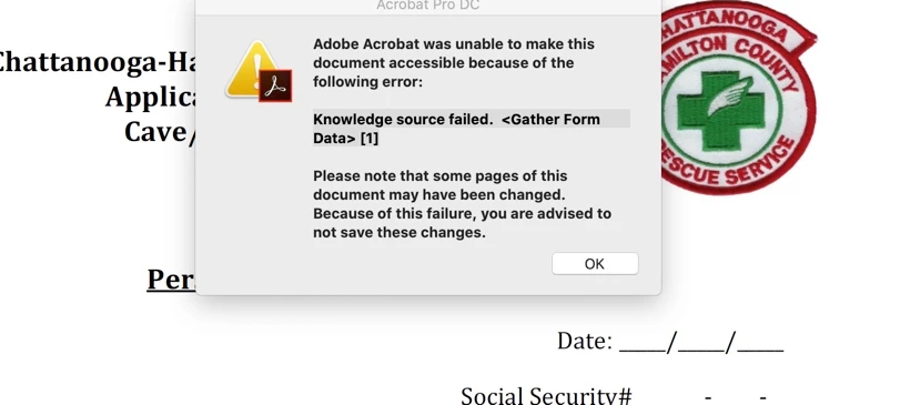 I'm getting this error when trying to create a PDF Form from a Word document: "Knowledge source failed. <Gather Form Data> [1]". I've created several other forms in the exact same way, but for some reason Acrobat doesn't like the Word source file this time. I can't figure out why. And this same question has been asked before in forums and it has never been answered. Help.