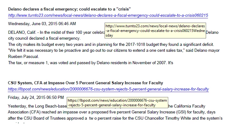 I've created a PDF with a list of 'results'. Each have a Title, Link, Date and Description.