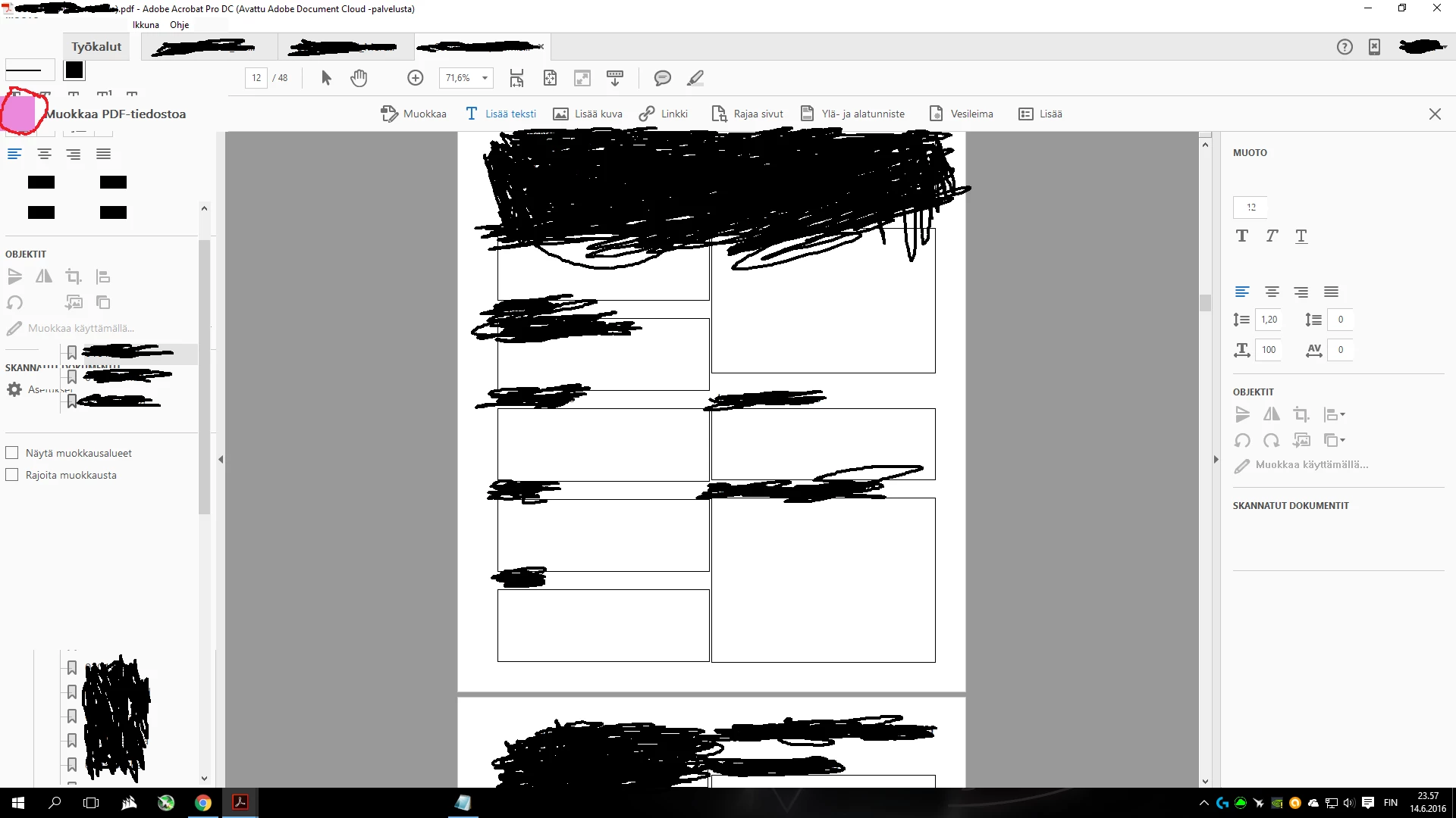 2. The tool icon with a colored background that I've circled (top left), this seems to disappear with the editing tool but not when using the other tools. And when changing to for example the commenting tool AFTER this glitch has appeared the icon appears like normal and then when changing back to edit the icon is still missing. Makes me think it's something related to this specific tool? Although I'm not sure how relevant this actually is since I haven't needed other tools so far, so I don't know if this would happen while using the comment tool or something else.