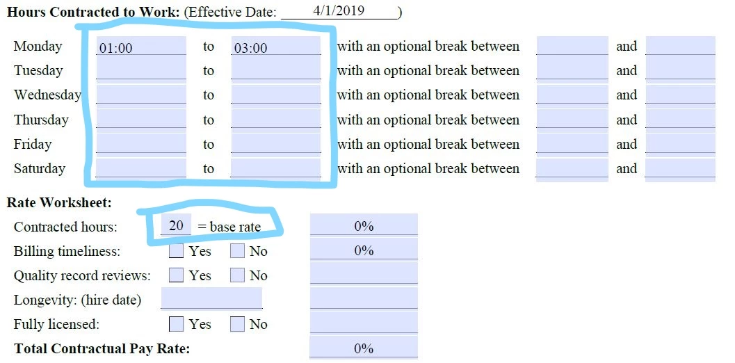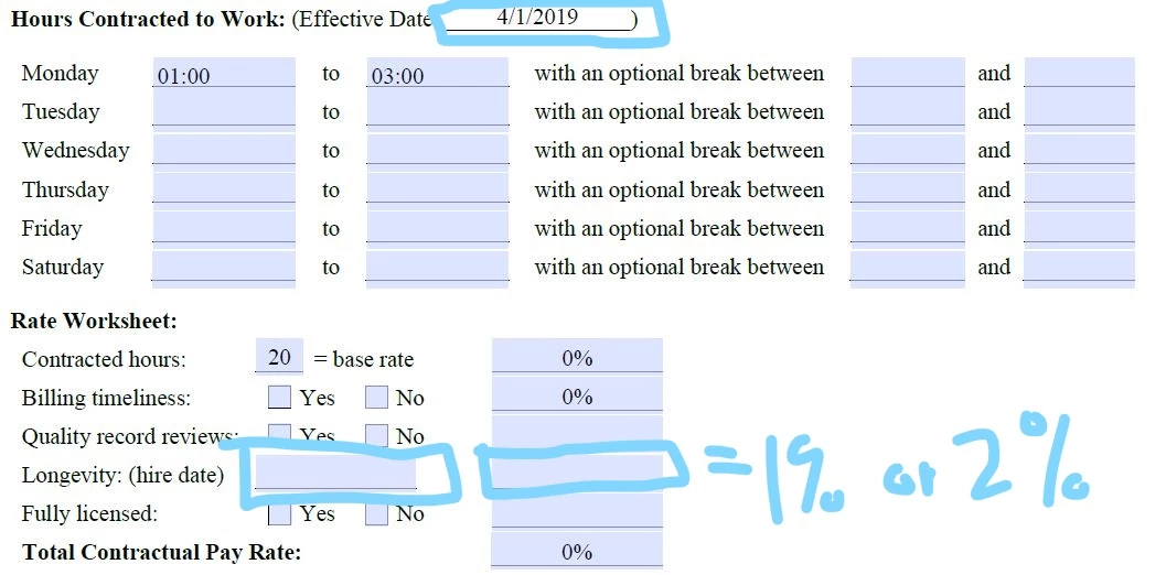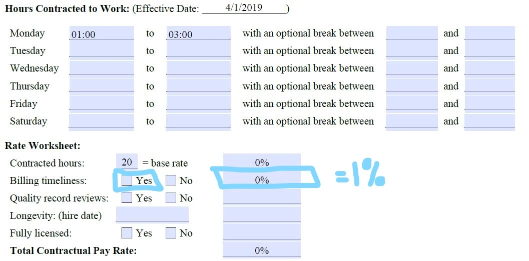 I am trying to create a pdf with several different functions. 1. I need to calculate the difference in dates to find how many years someone has worked with the company as of April 1, 2019. Second, I need to add the time they will work if they start at 8 am and finish at 5 pm. Third, I need to have a box that needs to read a percentage based on a value inputted into another box (i.e. If a = 15, then b = 45%; if a = 21, b = 50%, etc.). Lastly, I need boxes to read 1% if a "yes" box is checked. I've tried javascript on my own but I am doing something wrong. Can someone please simply tell me how to do this, where to insert my fields, etc.? Nothing I have done has worked. Thanks!