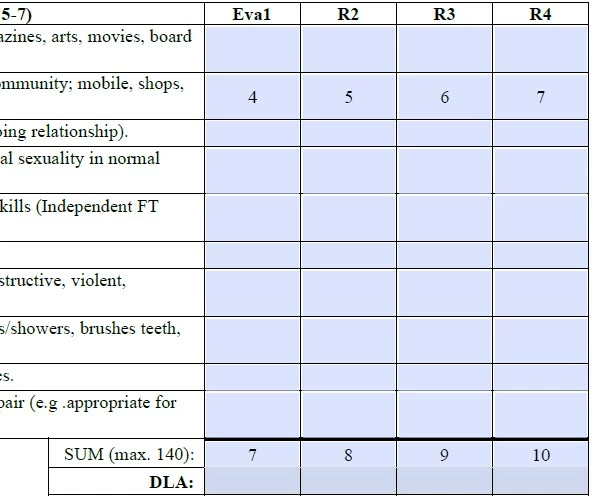 I have a form with four individual columns that need an average calculated, but with the zeros ignored. Below is what it looks like. The fields in each column are either E. R2. R3. R4., wish sequential numbers after each dot. The averages need to calculate in the DLA row. (Keep in mind this page two, there are numbers on the other, bringing up the sum at the bottom).