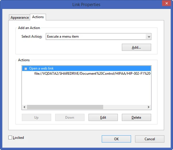 Somehow, PDFMaker (used from inside Word 2013) is now coding the resulting links in the PDFs as "Open a web link" (see Screenshot #3 below) instead of "Open a file":