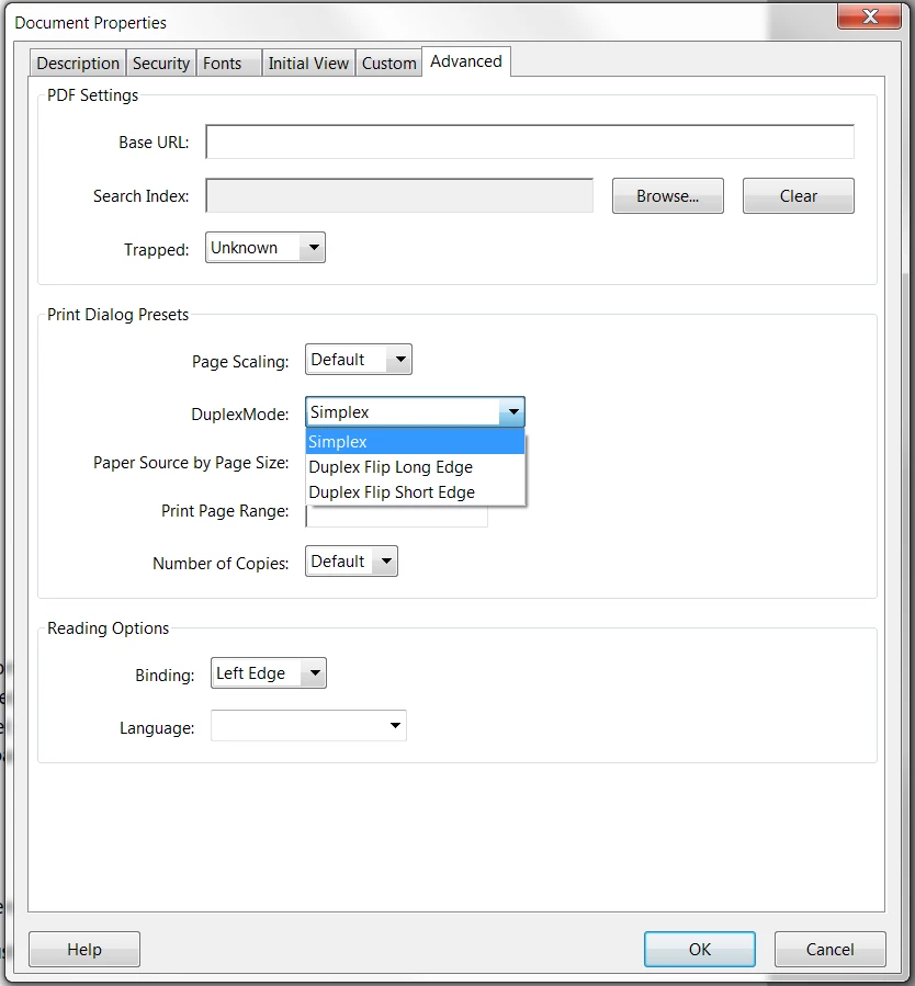 However, this setting is not currently honored in Acrobat, Reader, or any other PDF viewer we know of. Furthermore, even if this setting was honored it would be for the default value in the print dialog. It would not force duplex printing.