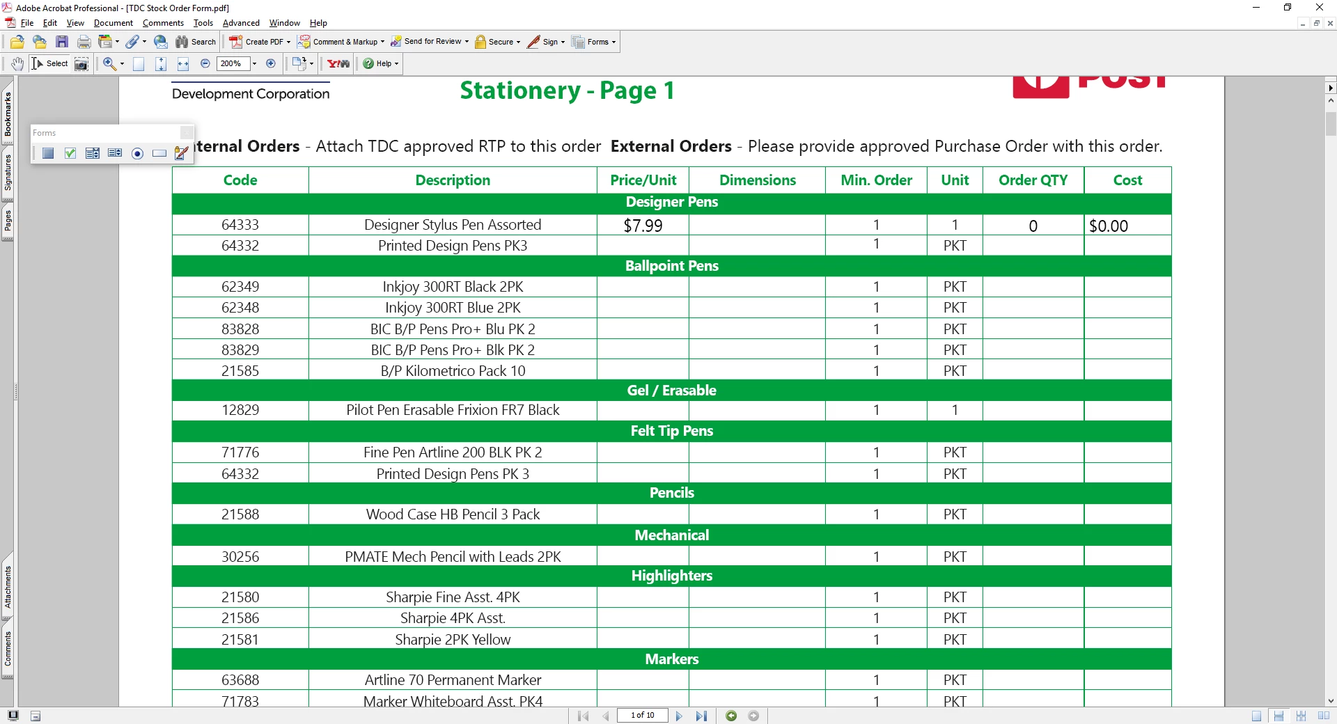 I have a PDF I'm putting together that is a product list with multiple rows, across multiple pages. It calculates Price x Order Quantity and gives a total in the last box. Example attached. Yes, I'm aware my version of Acrobat is getting very old ![]()