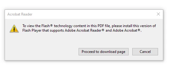 While opening an Adobe Acrobat invoice I receive the message "To view the Flash technology content in this PDE file, please install this version of Flash Player that supports Adobe Acrobat Reader and Adobe Acrobat."