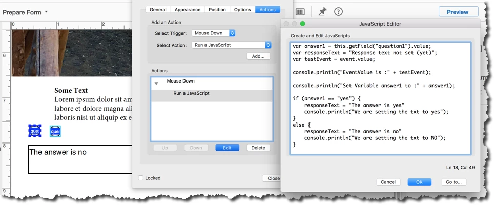 Clearly, I'm either not putting the javascript in the right spot, or I'm not using the right event, or both... or so it seems.
