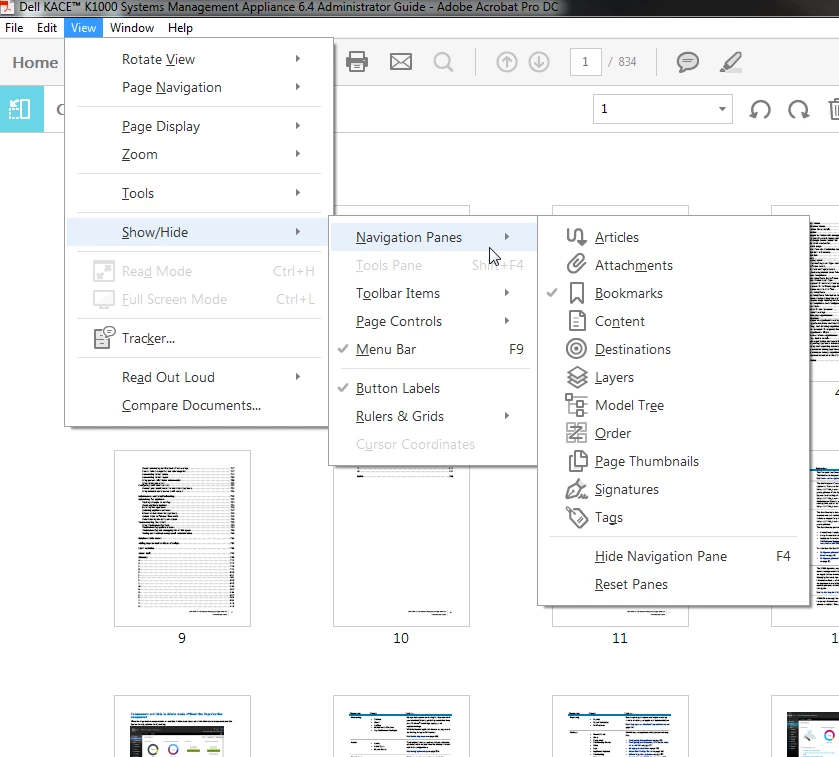 Show bookmarks in Organize pages