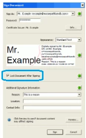 Sign Document: the box Lock Document After Siging checked by default