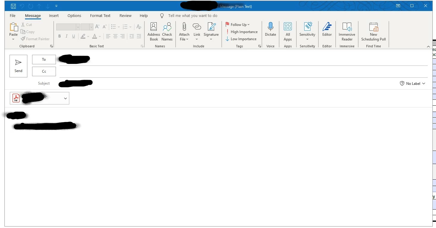 This is the code for a button on a fillable pdf doc. It has been working fine untill the latest version of outlook(1.2024.1124.100 (Production)) came out. Now it opens a email window and looks and works like it did before, but when you send it disapears like it worked but does not email to the address that is in the To: area, It goes nowhere does not email anything and no errors.