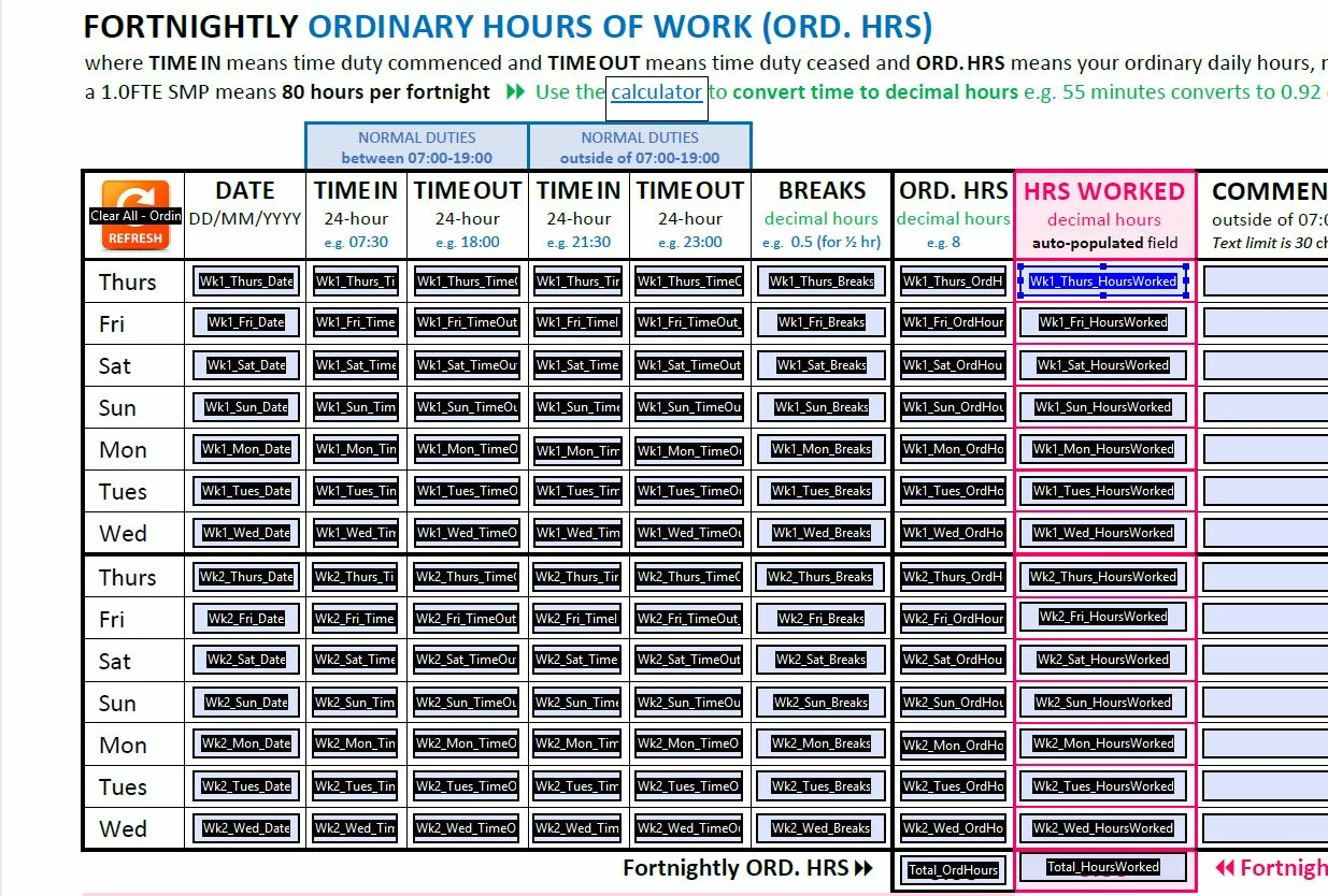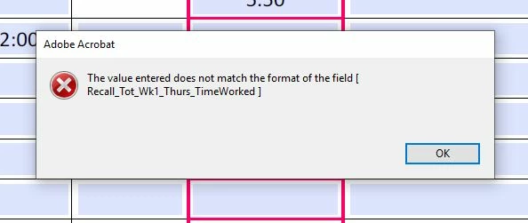 1. Every time I click on the cell it pops up saying : "The value enetred does not match the format of the field[Wk1_Thurs_HoursWorked]" .