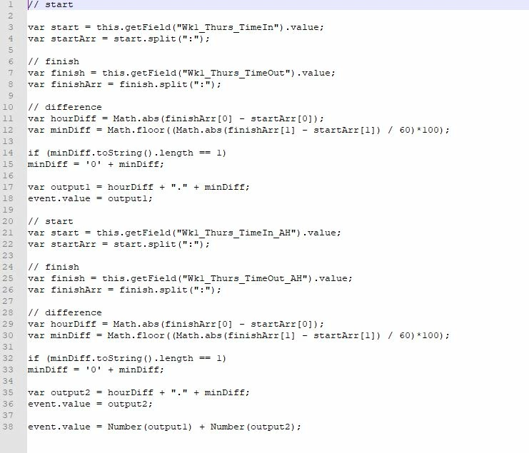 I have been trying to create Javascript TimeSheet calculation and I know this must have been possibly asked but I am having two issues