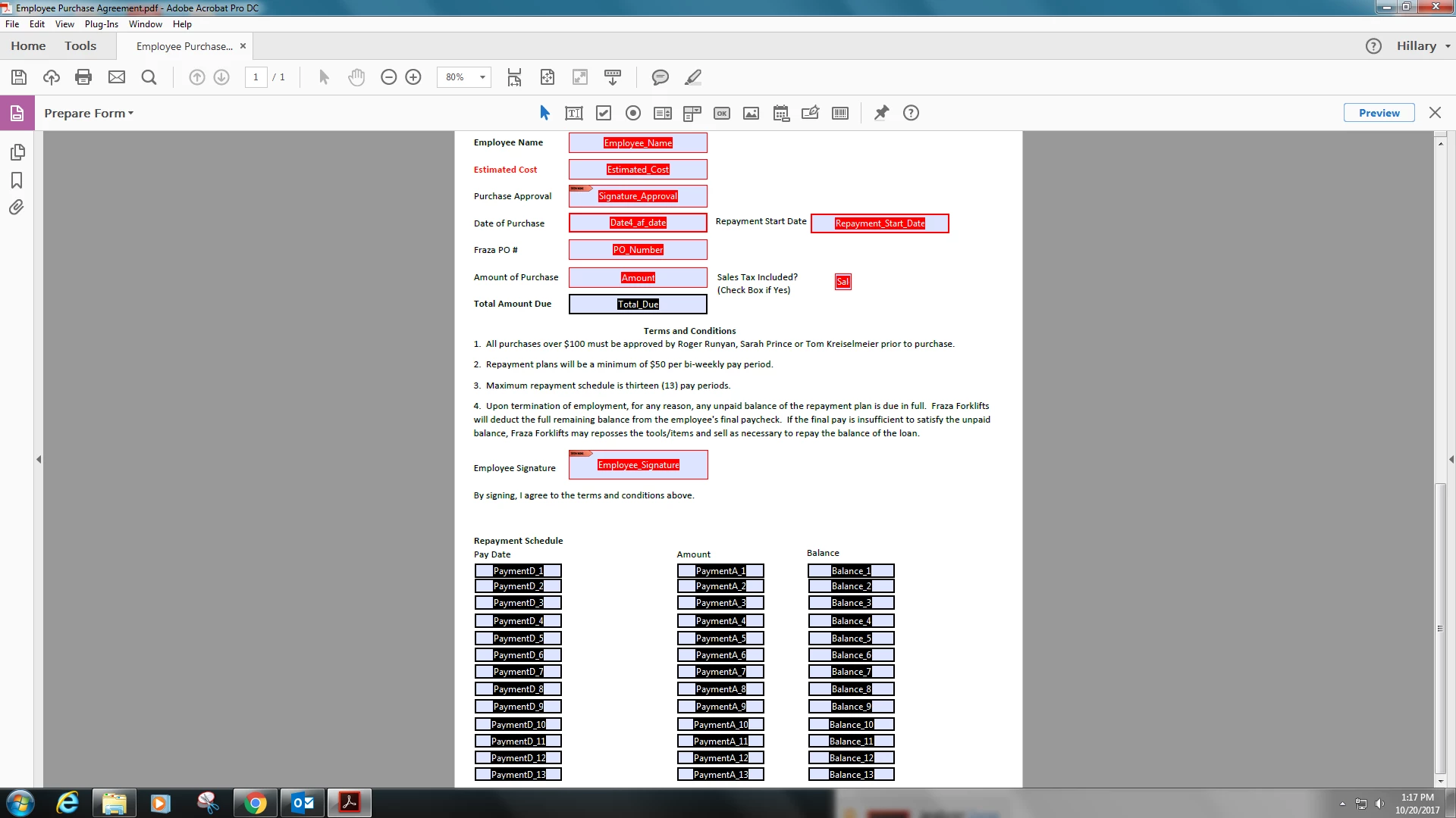 In the example form shown below, I want to have an employee enter a few fields and have the form calculate the rest as specified below: