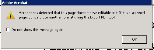Although from my understanding with Adobe Acrobat DC after choosing "Edit PDF" Acrobat should automatically recognize the text on the first page to make it editable, although for my user after choosing "Edit PDF" they receive this error message: