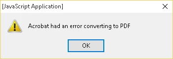 when i try to convert any webpage to pdf .,using the addon (firefox) .,its giving me a javascript error saying "Acrobat had an error converting to PDF"