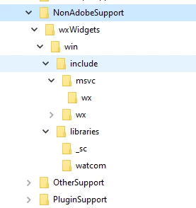 I have installed wxWidgets-3.0.5 , and copied the contents of \wxWidgets-3.0.5\include to \NonAdobeSupport\wxWidgets\win\include, and the contents of \wxWidgets-3.0.5\lib to \NonAdobeSupport\wxWidgets\win\libraries.