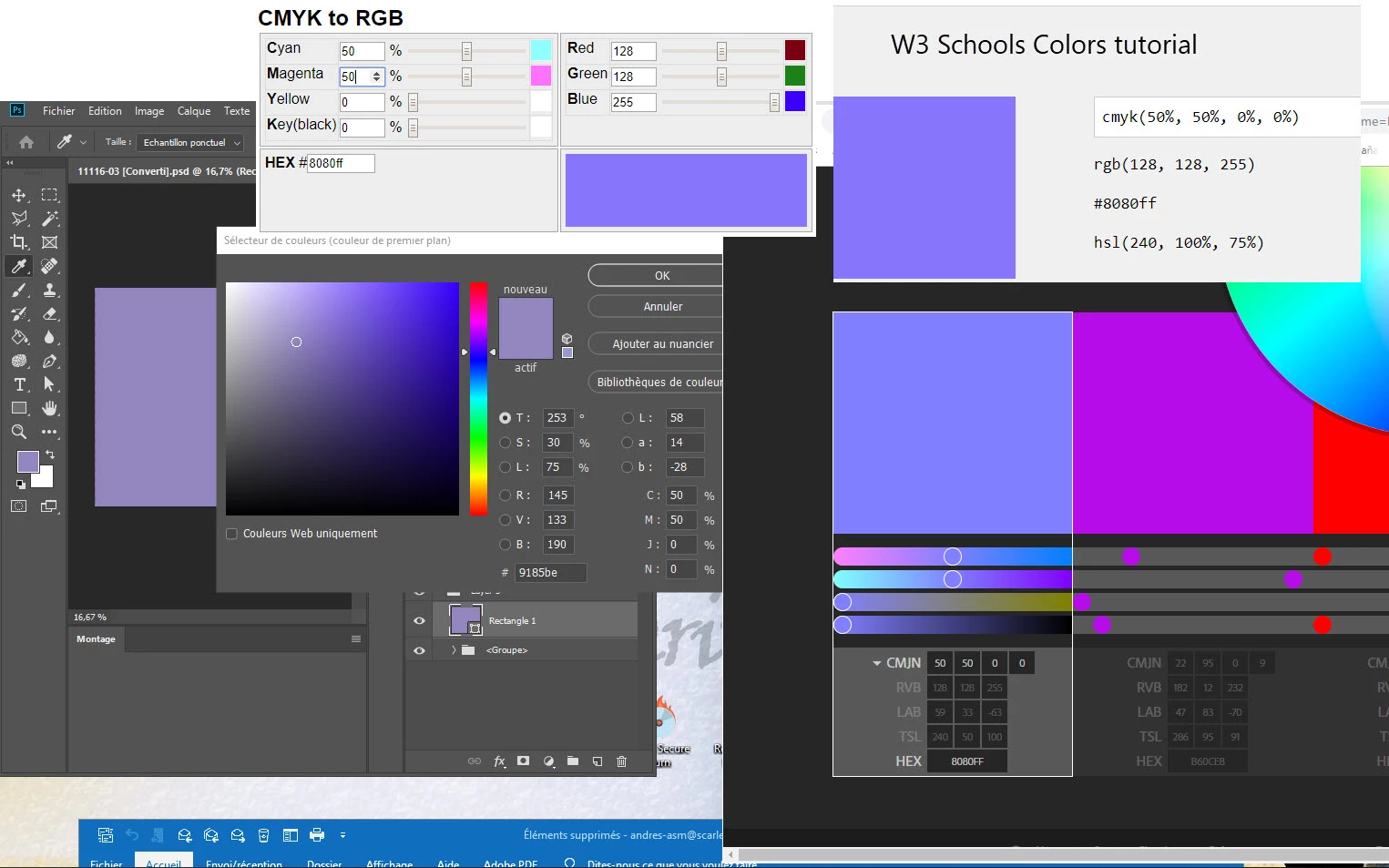 When you enter C70 M100 it displays a very very wrong color. In fact you get the contrary C100 M70