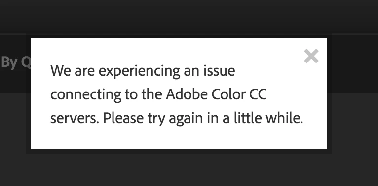 2. When I try to create a new folder on Adobe color libraries, a notice showed up again. I couldn't access my libraries and everything I saved before aren't showing either.
