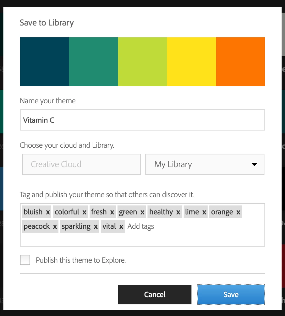 3. When I try to save a color swatch on Adobe Colour, the web wouldn't process the request.