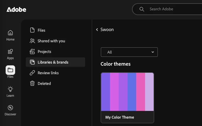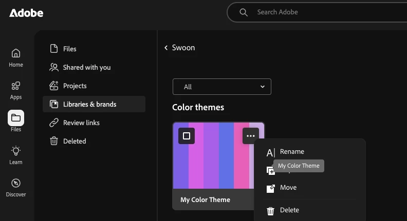 In Libraries and Brands you will see your colour libraries.