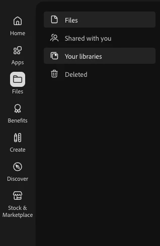 3) Viewing or seeing the pretty simple in Photoshop, Illustrator, Adobe Express you will see "Libraries"