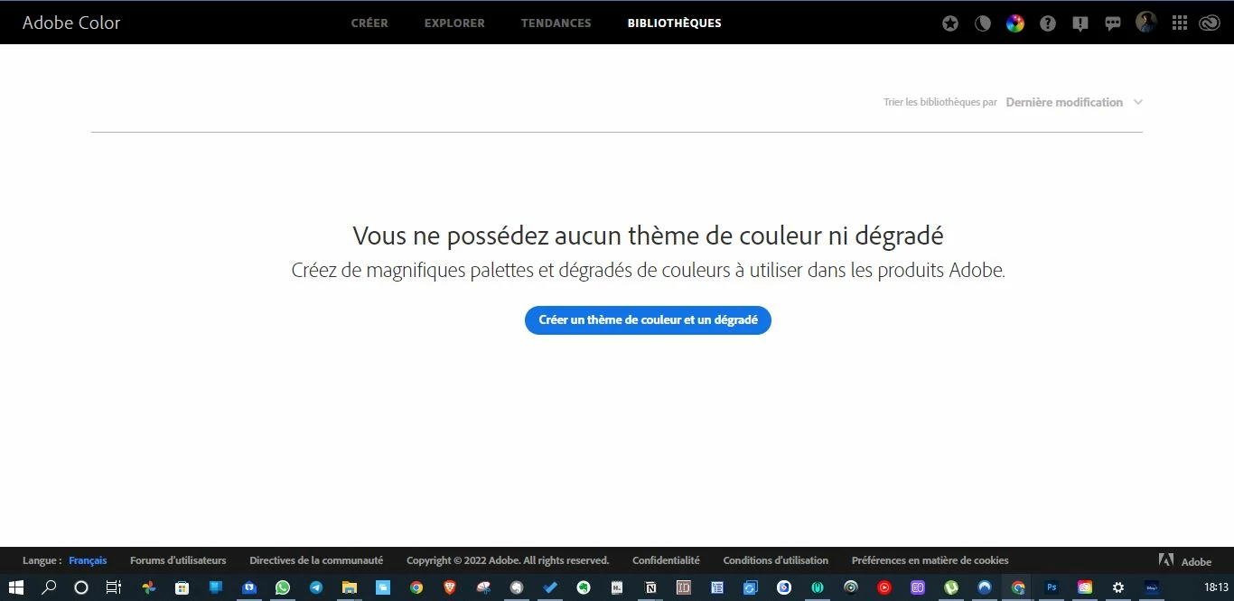 Je rencontre un souci sur Adobe Color. Mes thème ont subitement disparu de ma bibliothèque. Lorsque j'en crée un nouveau, il apparait bien dans ma bibliothèque Adobe CC mais pas dans celle d'Abobe Color.